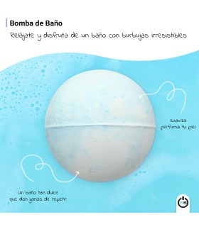 - Bomba de baño efervescente: relaja y perfuma la piel mientras llena el agua de burbujas irresistibles.