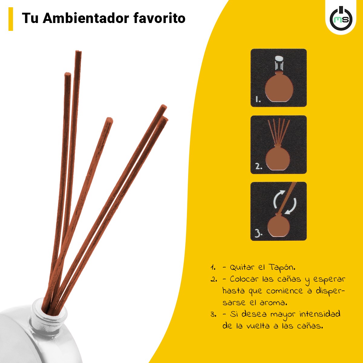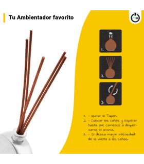 Ambientador mikado con aroma a melocotón, extractos naturales y 0 % alcohol. Perfuma el hogar de forma continua durante más de 60 días, creando un ambiente dulce, cálido y acogedor. Formato 40 ml.