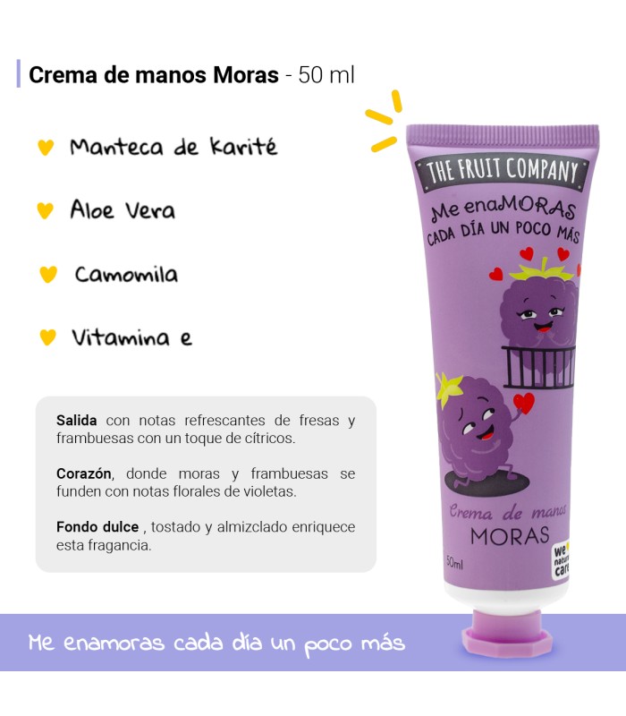 Pack regalo Moras Candy de The Fruit Company 🍇 con fragancia dulce afrutada. Incluye colonia en spray 40 ml, crema de manos 50 ml, aceite labial, toallitas biodegradables y bolsa de tela reutilizable. Ideal para regalar 🎁.