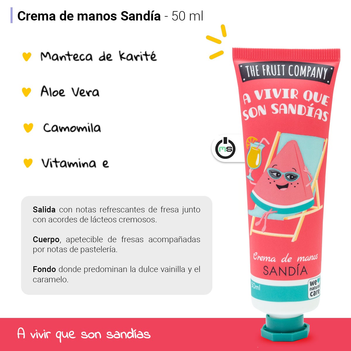 idratación exprés con aroma a verano 🍉☀️. La Crema de Manos Sandía de The Fruit Company, ahora en pack de 3 unidades de 50 ml, es perfecta para nutrir y suavizar tus manos al instante, sin dejar sensación grasa. Porque sí: a vivir, que son sandías.