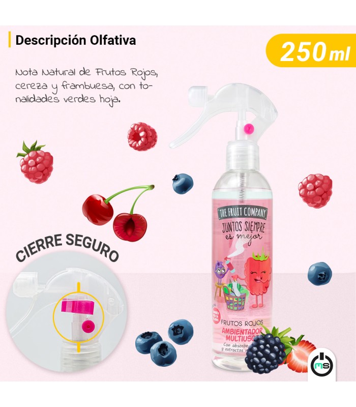 The Fruit Company Spray Multiusos Frutos Rojos 250 ml | Ambientador Hogar Absorbe Olores, No Mancha y Aroma Intenso