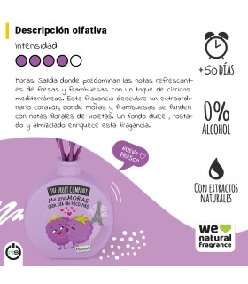 El Ambientador Mikado Moras de The Fruit Company está diseñado para perfumar el hogar de forma constante y sin complicaciones. Su fragancia afrutada a moras y frutos del bosque aporta una sensación cálida y agradable que mejora el ambiente de cualquier estancia.
