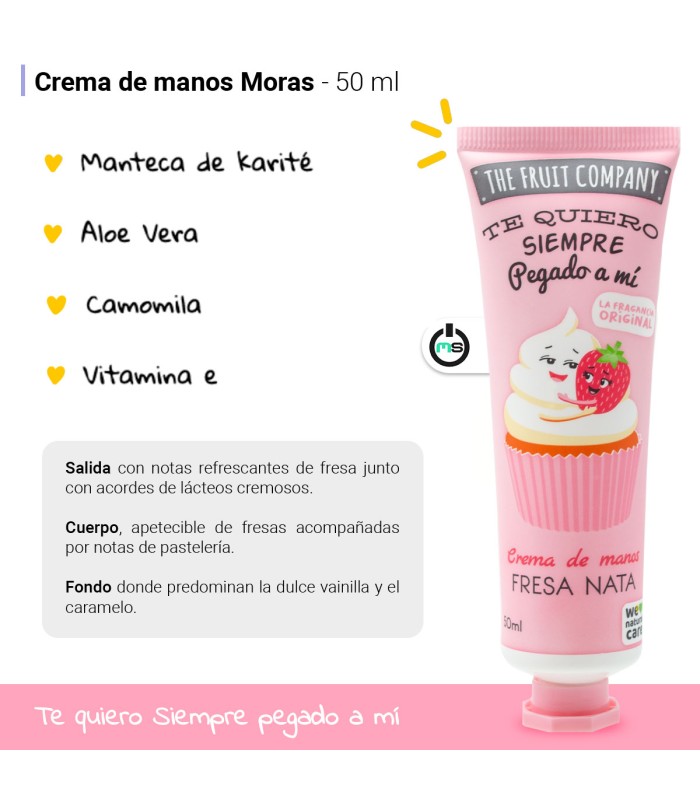 Tan dulce y positiva que querrás llevarla siempre contigo 🍓💖. La Crema de Manos Fresa Nata de The Fruit Company, ahora en pack de 3 unidades de 50 ml, está pensada para cuidar tus manos a diario mientras disfrutas de un aroma goloso que te acompaña a todas partes.