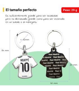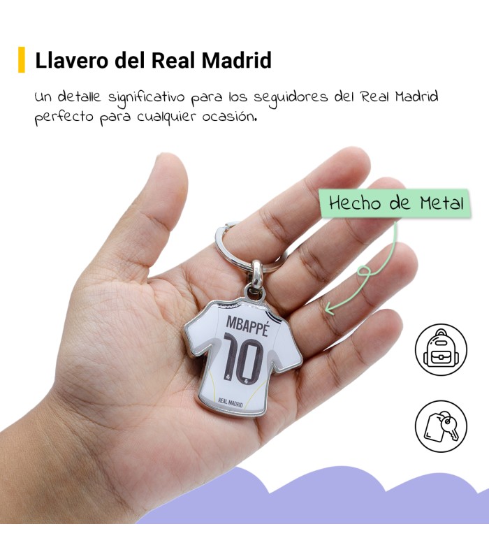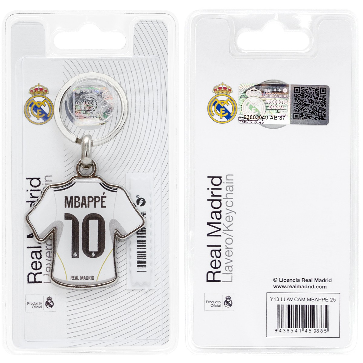 Luce tu pasión por el Real Madrid CF con este llavero metálico oficial en forma de camiseta de Mbappé número 10. Fabricado en metal resistente, ideal para fans, coleccionistas o regalo.