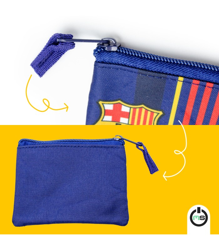 Monedero oficial FC Barcelona de 12,5 x 10 cm fabricado en 100% poliéster. Compacto, resistente y con cremallera segura. Ideal para monedas, llaves y pequeños objetos. Perfecto para fans del Barça.
