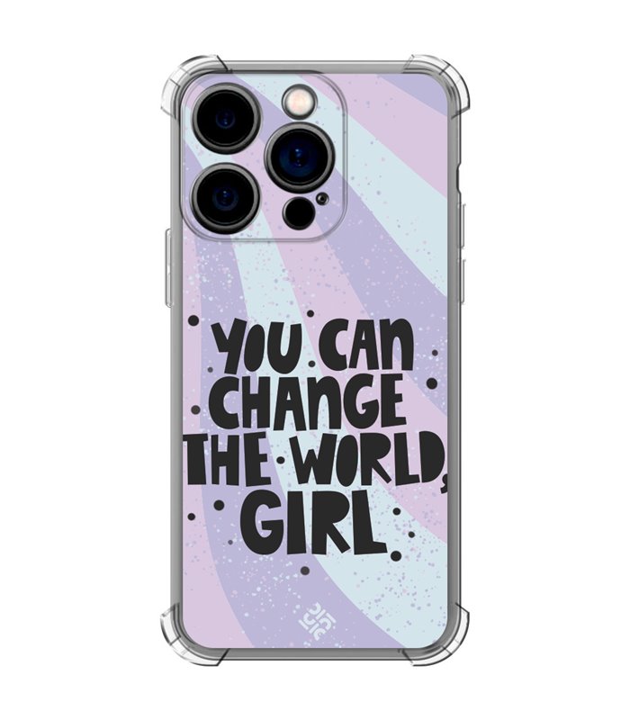 Funda Antigolpe [ iPhone 14 Pro ] Dibujo Frases Guays [ You Can Change The World Girl ] Esquina Reforzada Silicona 1.5mm