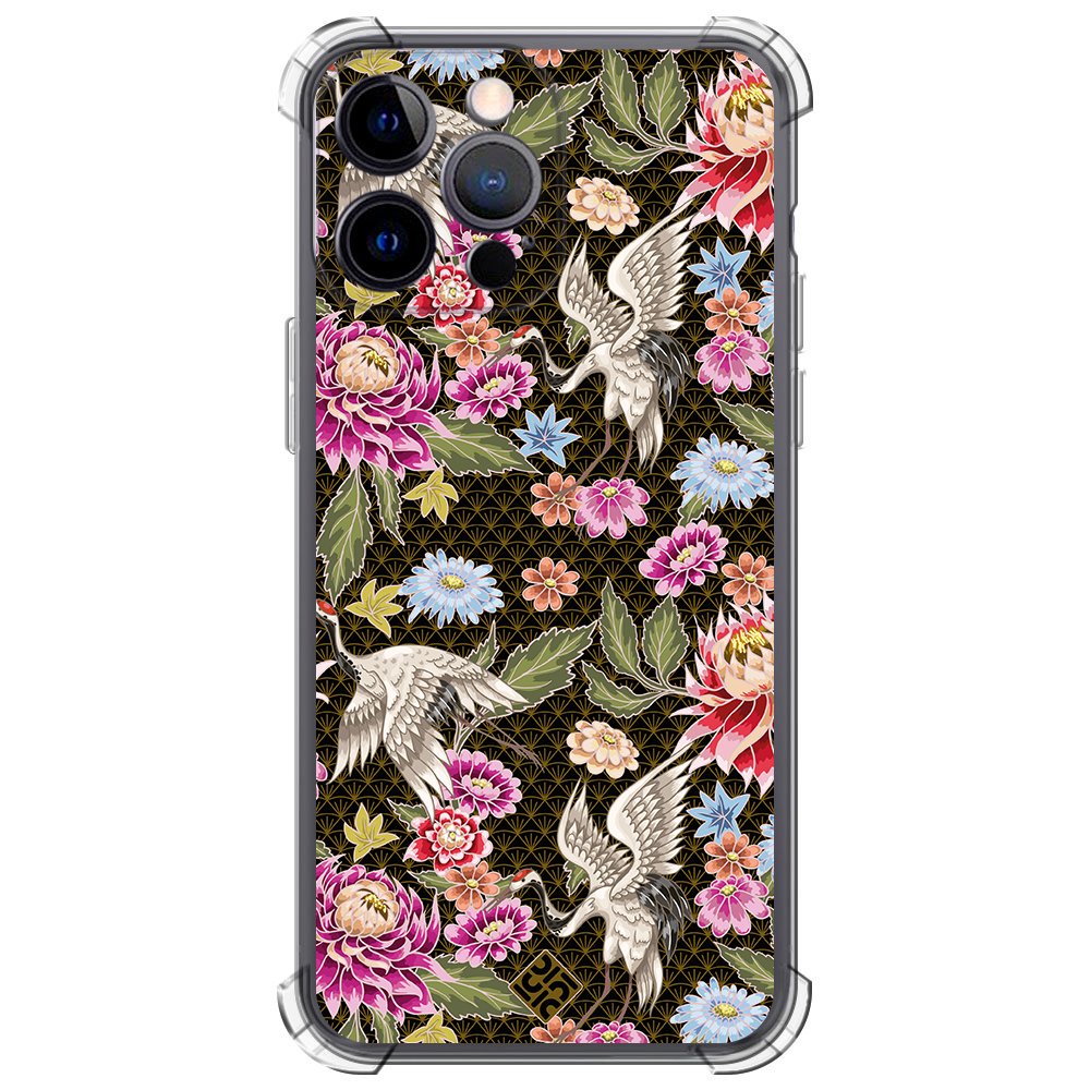 Funda Antigolpe [ iPhone 14 Pro Max ] Dibujo Japones [ Estampado de Flores y Grúas Blancas ] Esquina Reforzada Silicona 1.5