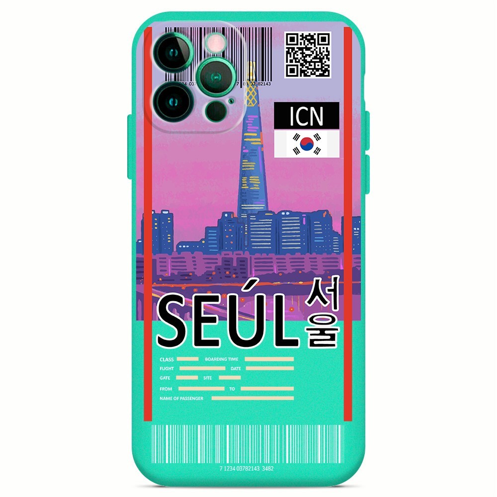 Funda Silicona Suave [ iPhone 12 Pro ] Verde [ Billete: Seúl ] Carcasa Liquida Case Cover.