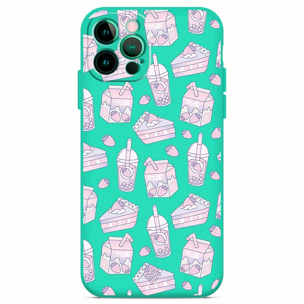 Funda Silicona Suave [ iPhone 12 Pro ] Verde [ Tartas y bricks en tonos pastel ] Carcasa Liquida Case Cover.