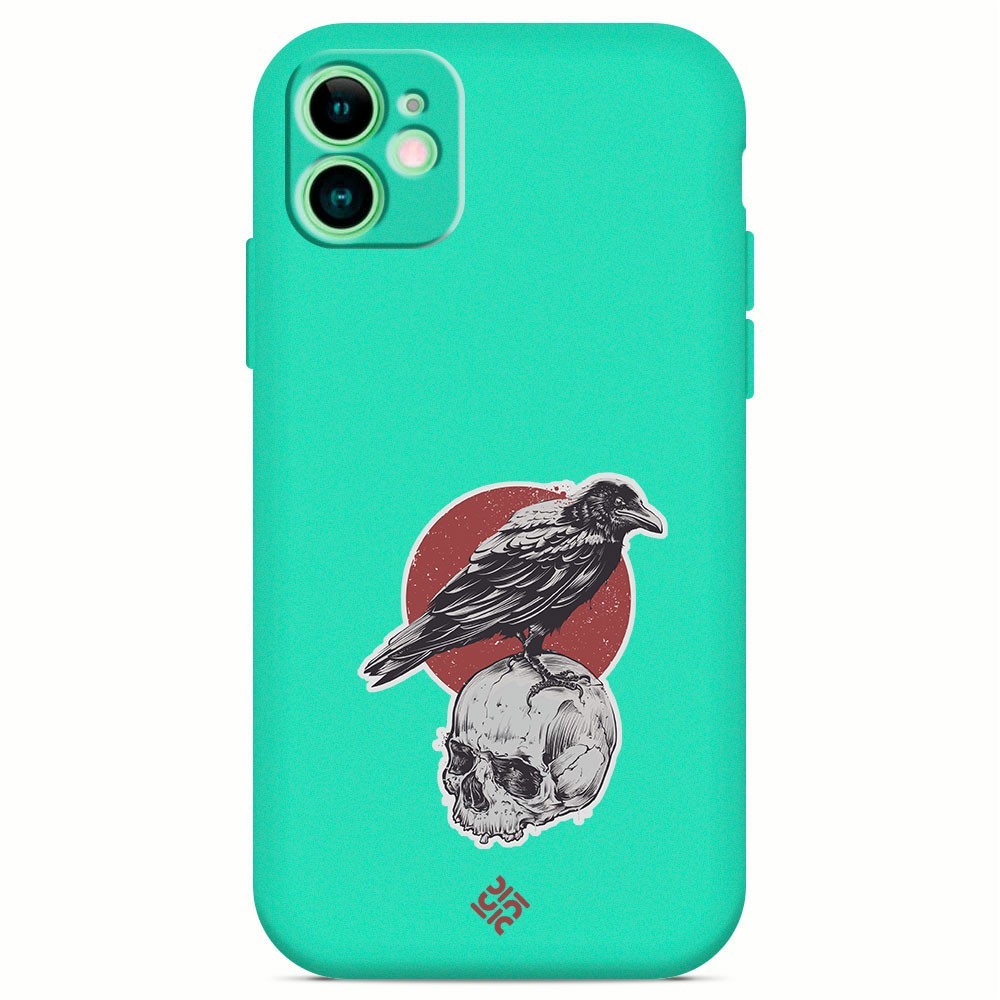 Funda Silicona Suave [ iPhone 11 ] Verde [ Cuervo y calavera ] Carcasa Liquida Case Cover.