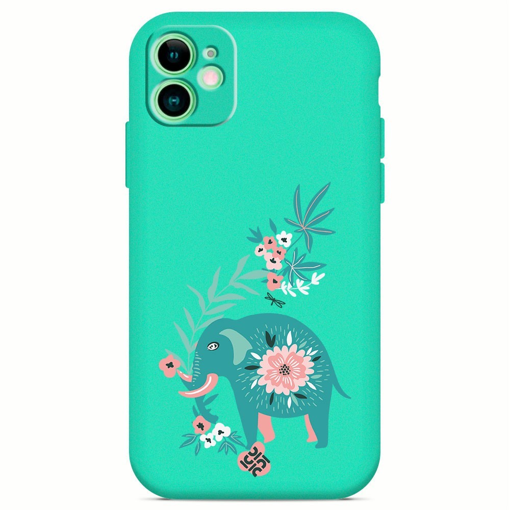 Funda Silicona Suave [ iPhone 11 ] Verde [ Elefante floral ] Carcasa Liquida Case Cover.