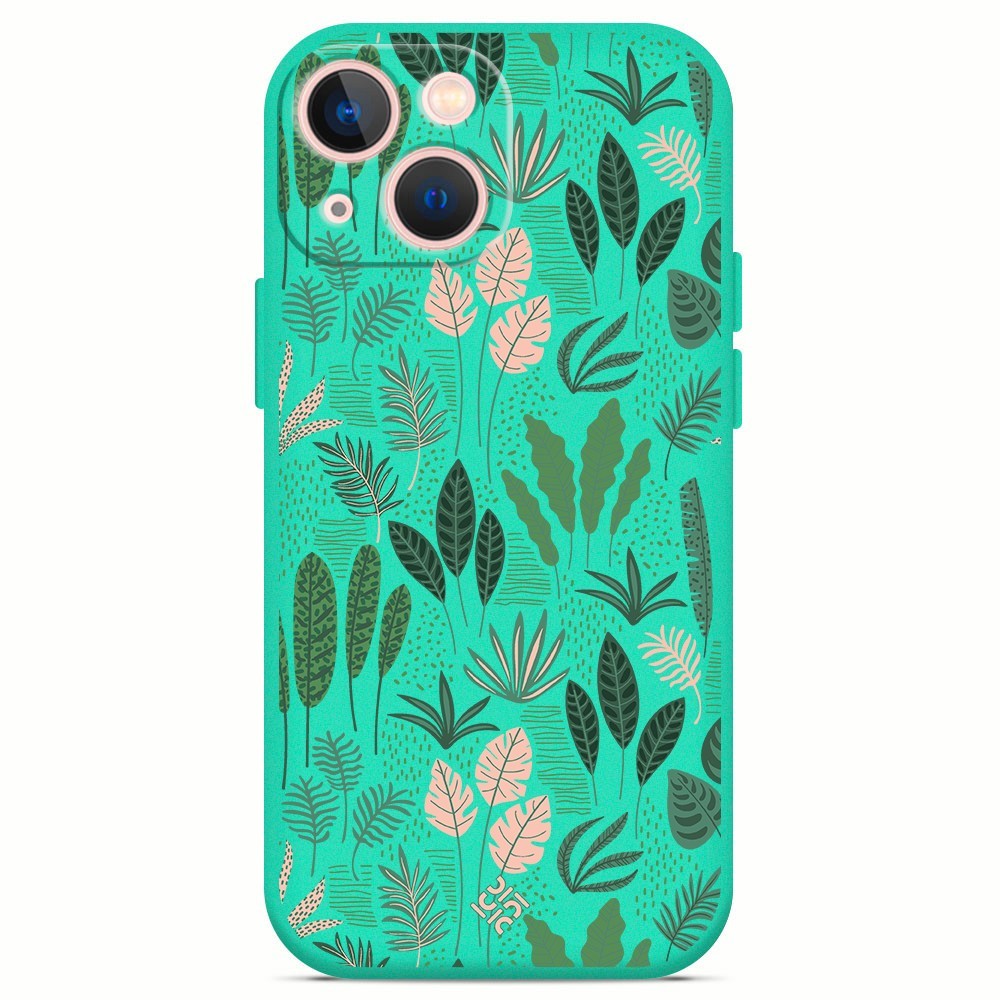 Funda Silicona Suave [ iPhone 13 Mini ] Verde [ Hojas y plantas ] Carcasa Liquida Case Cover.