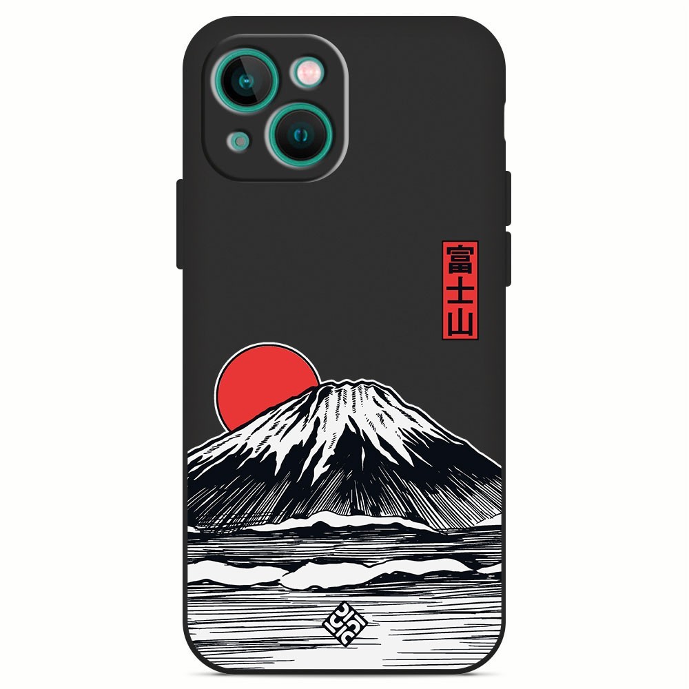 Funda Silicona Suave [ iPhone 13 ] Negro [ Monte Fuji ] Carcasa Liquida Case Cover.