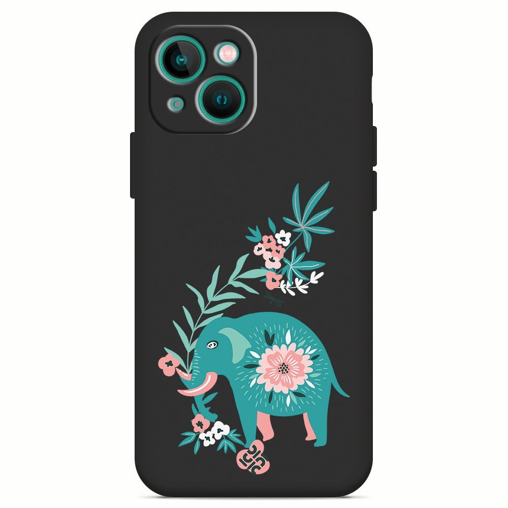 Funda Silicona Suave [ iPhone 13 ] Negro [ Elefante floral ] Carcasa Liquida Case Cover.