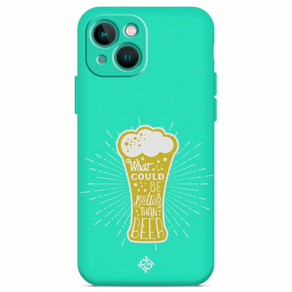 Funda Silicona Suave [ iPhone 13 ] Verde [ What Could Be Better Than Beer ] Carcasa Liquida Case Cover.