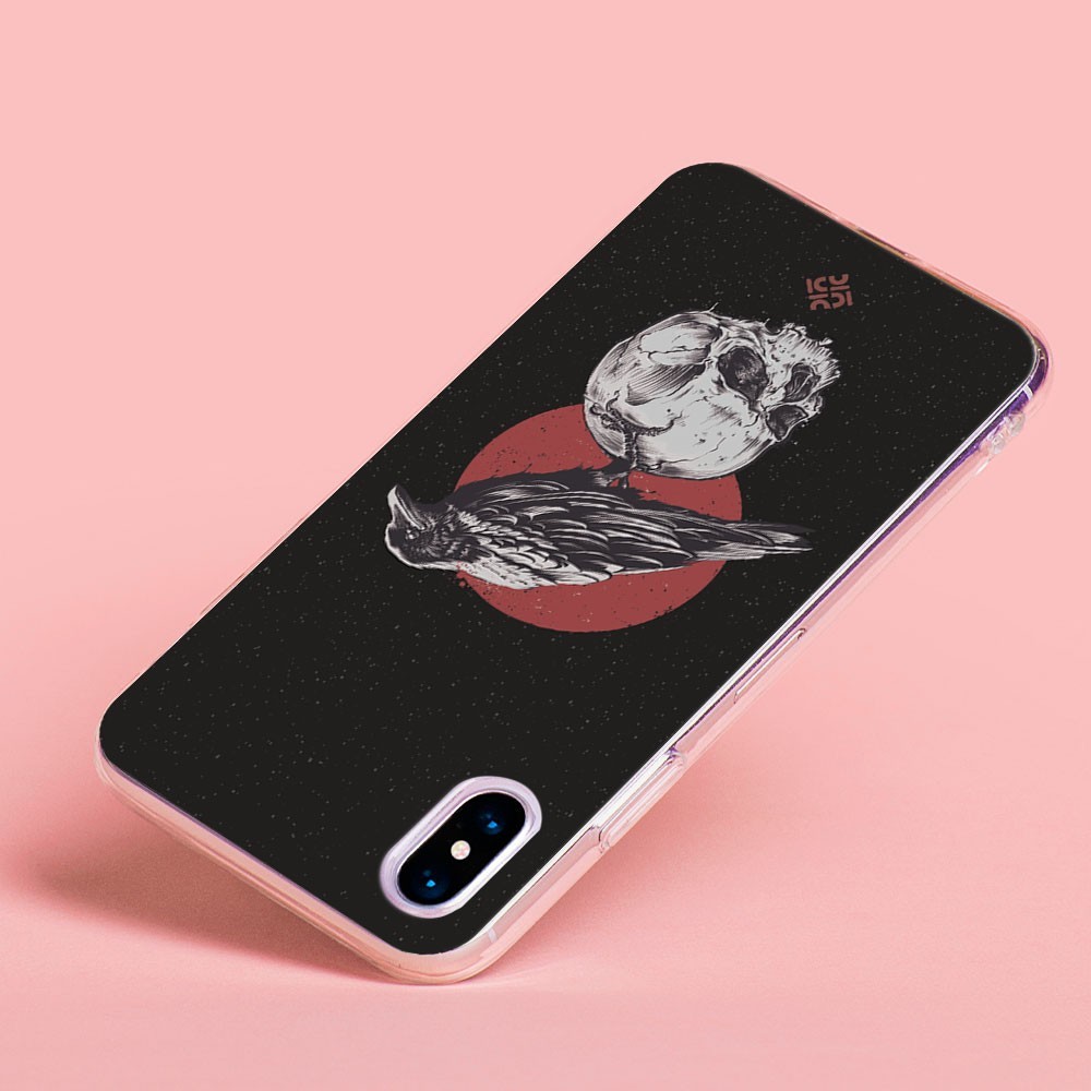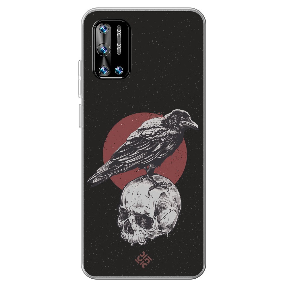 Funda para [ Doogee N40 Pro ] Dibujo Gotico [ Cuervo Sobre Cráneo ] de Silicona Flexible para Smartphone