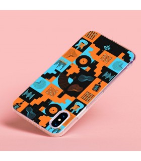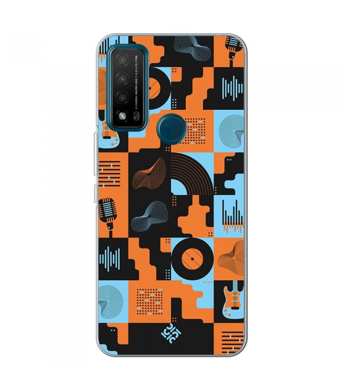 Funda para [ TCL 20R 5G ] Diseño Música [ Iconos Música Naranja y Azul ] de Silicona Flexible para Smartphone