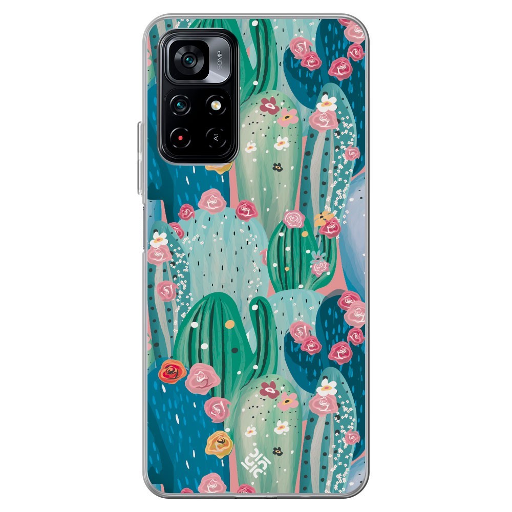 Funda para [ Poco M4 Pro 5G ] Dibujo Botánico [ Cactus Con Flores Rosas ] de Silicona Flexible para Smartphone