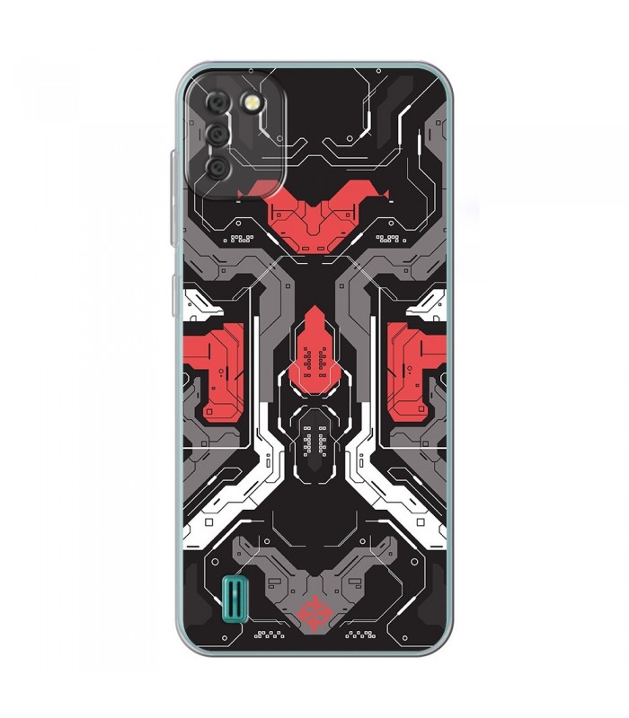 Funda para [ Doogee X93 ] Dibujo Gamers [ Cyberpunk Rojo y Grises ] de Silicona Flexible para Smartphone