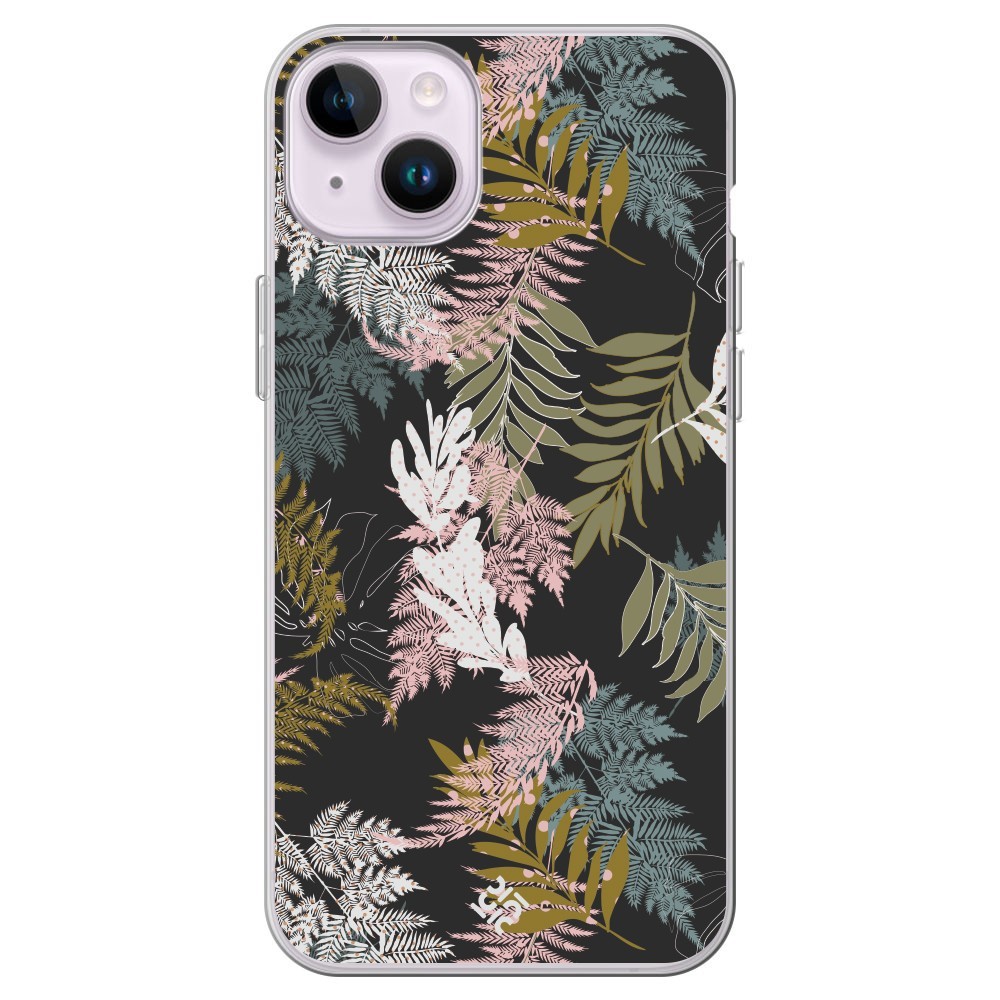 Funda para [ iPhone 14 ] Dibujo Botánico [ Diseño de hojas ] de Silicona Flexible para Smartphone
