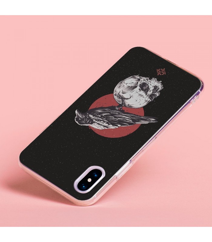 Funda para [ iPhone 14 Pro ] Dibujo Gotico [ Cuervo Sobre Cráneo ] de Silicona Flexible para Smartphone