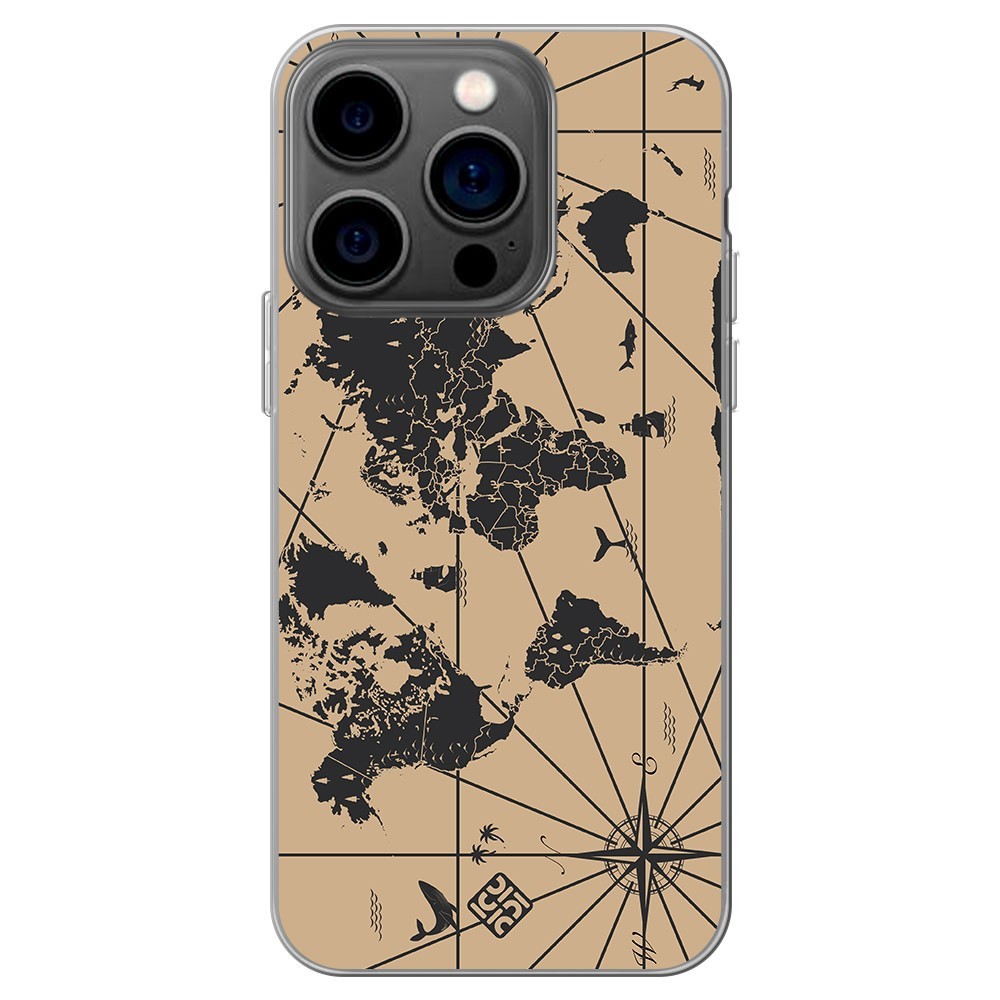 Funda para [ iPhone 14 Pro ] Dibujo Auténtico [ Mapa Mundi ] de Silicona Flexible para Smartphone