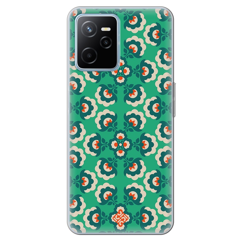 Funda para [ Realme Narzo 50A Prime ] Dibujos Retro [ Algodones Verdes - Caleidoscopio ] de Silicona