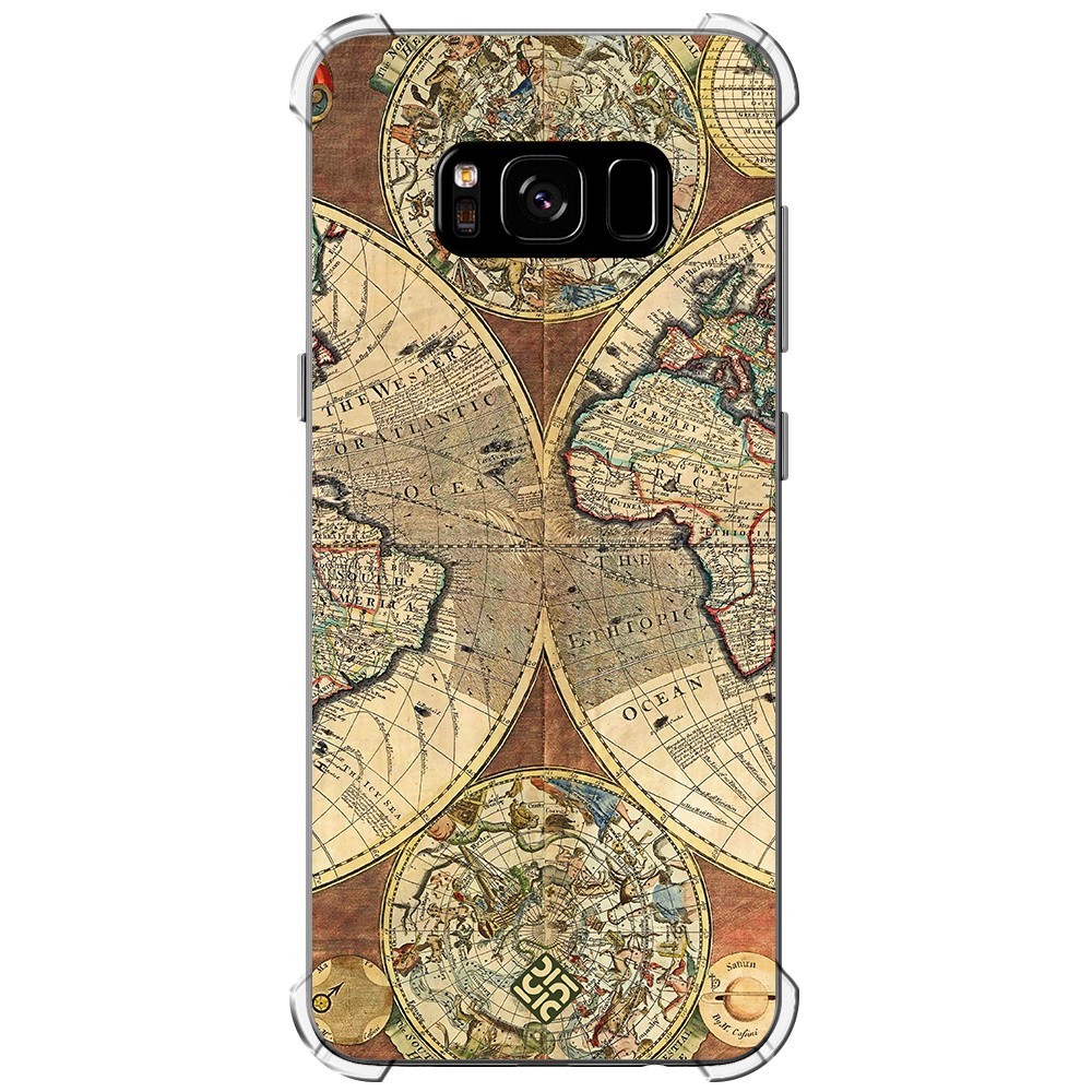 Funda Antigolpe [ Samsung Galaxy S8 ] Dibujo Auténtico [ Antiguo Mapa Mundi ] Esquina Reforzada Silicona 1.5mm Transparente