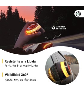 - Visibilidad total LED 360º / 1 km: destellos ámbar de alta potencia visibles en torno a 1 km y en 360º, incluso con lluvia, niebla u oscuridad.
