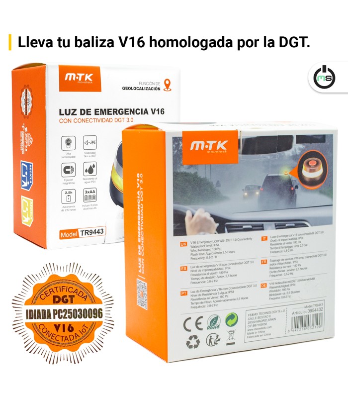 - 1 × Luz de Emergencia V16 conectada DGT 3.0