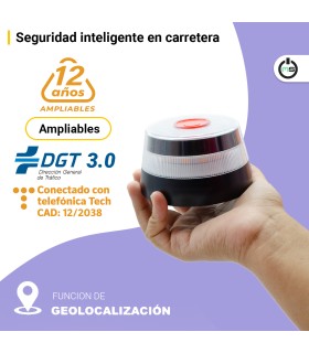 - Conectividad DGT 3.0 durante 12 años: conexión IoT (red Telefónica) con servicio incluido hasta 2038 y sin costes adicionales. Envía tu ubicación a la plataforma oficial para avisar a otros conductores y servicios de asistencia.